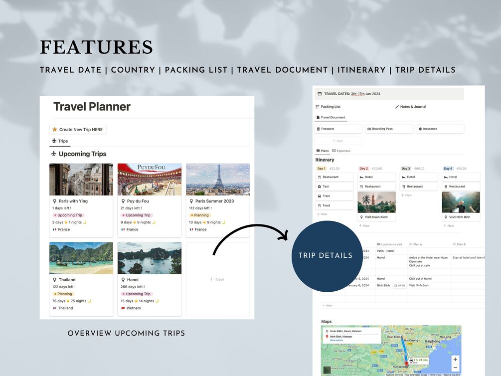 The Ultimate Travel Planner is an all-in-one Notion template that provides an easy and efficient way to organize your travel plans. This template is designed to cater to all your travel planning needs, whether you're a frequent traveler or an occasional explorer.